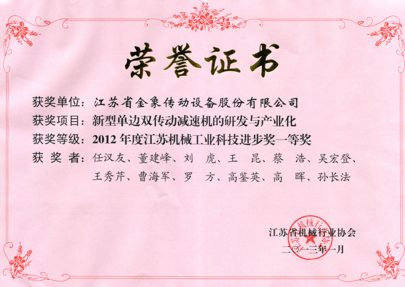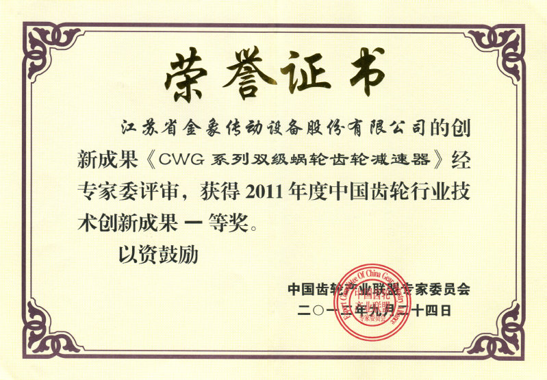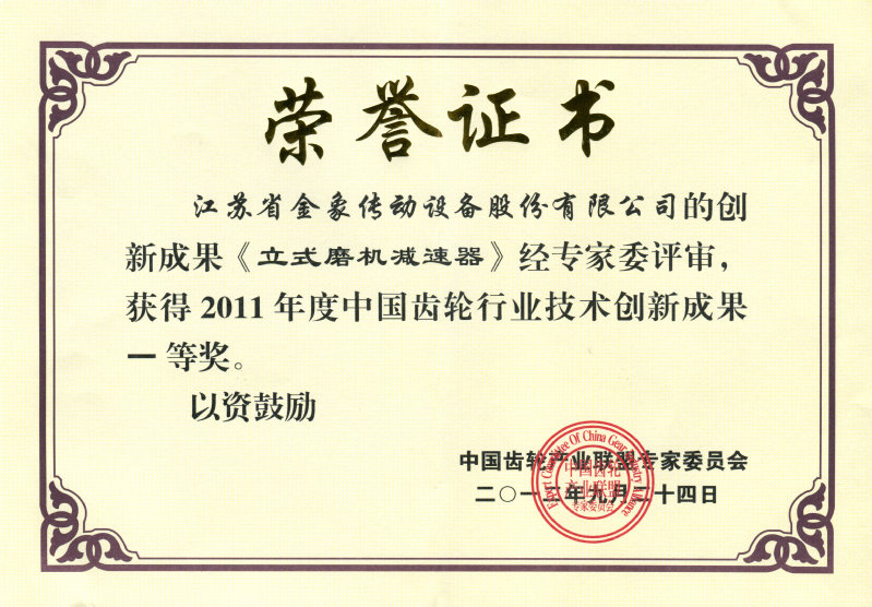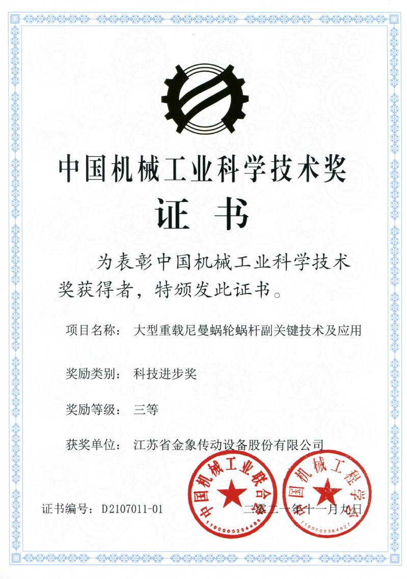 公司獲得多項行業(yè)或省級獎項:公司研發(fā)的“大型重載尼曼蝸輪蝸桿副關鍵技術及應用”獲批2021年度中國機械工業(yè)科技進步三等獎,“多分流立式磨機傳動裝置”獲批江蘇省專精特新產(chǎn)品,新型立式磨機減速器的研發(fā)與產(chǎn)業(yè)化獲得中國機械工業(yè)科學技術獎三等獎;新型單邊雙傳動減速機的研發(fā)與產(chǎn)業(yè)化獲2012年度江蘇機械工業(yè)科技進步一等獎;CWG系列雙級蝸輪齒輪減速器、立式磨機減速器被授予中國齒輪行業(yè)技術創(chuàng)新成果一等獎。
