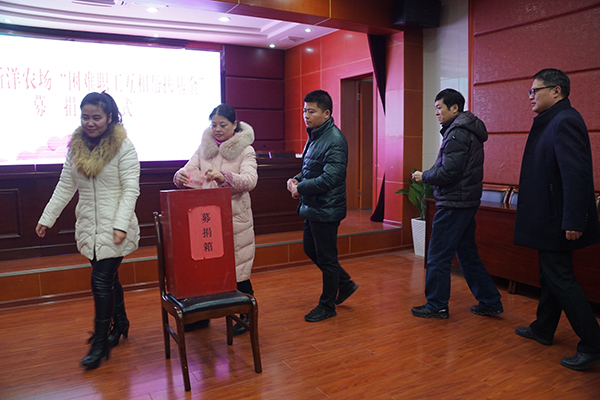 為建立健全扶貧幫困工作長(zhǎng)效機(jī)制,弘揚(yáng)團(tuán)結(jié)友愛(ài)、互幫互助的傳統(tǒng)美德,1月2日,新洋農(nóng)場(chǎng)舉行2018年“困難職工互相幫扶基金”募捐儀式。場(chǎng)領(lǐng)導(dǎo)陳守軍、潘元海、戴學(xué)林、王煜明出席,機(jī)關(guān)全體工作人員參加了儀式。