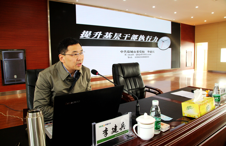 會(huì)議邀請(qǐng)了鹽城市委黨校黨委委員、教育長(zhǎng)李建兵作《提升基層干部執(zhí)行力》的專題輔導(dǎo)。李教育長(zhǎng)分別從樹(shù)立執(zhí)行意識(shí)、融入執(zhí)行團(tuán)隊(duì)、構(gòu)建執(zhí)行流程、規(guī)范執(zhí)行程序四個(gè)方面,系統(tǒng)闡述了如何提升基層干部執(zhí)行力和提升執(zhí)行力的重要性。