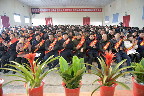 副場長王林宣讀了大會關于上述三個報告和兩份相關文件的決議,號召全場干群為實現2018年各項目標任務而不懈努力。黨委副書記韓正光宣讀表彰決定,對2017年度成績突出的36個先進單位、55個先進個人或家庭進行表彰并隆重頒獎。四個單位的主要負責人和創業創新先進個人代表溫仕貴分別作了交流或表態發言。