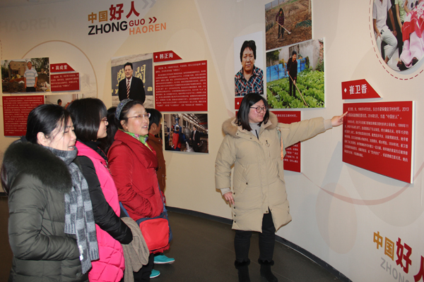 位于市區鹽瀆公園內的好人館,集中展示了近年來全市涌現出的43位“中國好人”、62位“江蘇好人”和228位“鹽城好人”的典型事跡。“一個好人感動一座城,一群好人溫暖大家庭......涓涓之水匯成大海一樣奔涌,祝福你好人,幸福伴你一生”,聆聽詩文、海濤作詞、常暢作曲的《好人贊》,觀看一幅幅肖像、一件件實物,點點滴滴折射出眾多平凡人的不平凡人生。助人為樂、誠實守信、見義勇為、孝老愛親、敬業奉獻等八個篇章的好人事跡,都很感人,催人奮進,女職工們紛紛表示,要向“好人”看齊、以“好人”為榜樣,積極傳播正能量,帶頭踐行社會主義核心價值觀,努力爭當“好人”,為弘揚中華民族傳統美德、創建和諧社會作出自己應有的貢獻。