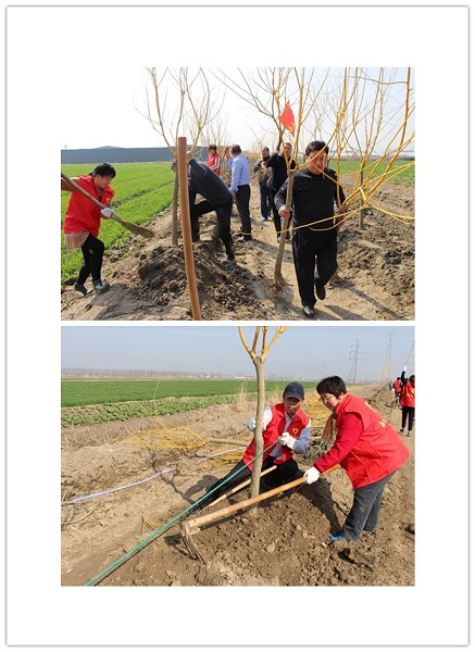 經過一個上午的辛勤勞動,兩長排整齊劃一的樹苗躍然眼前,特別是此次栽植的樹種為黃金槐,更是一片春意盎然,美不勝收。