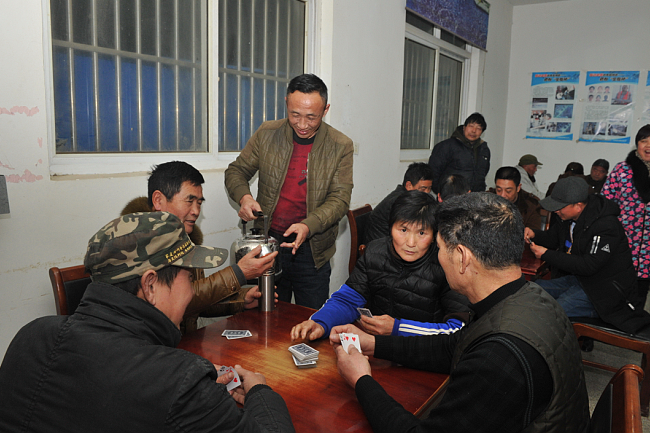 為了更好地服務居民,張強把家中電視機搬進了活動室,讓居民娛樂之余也不會錯過新聞節目。同時又買來電水壺和一次性紙杯,給來活動室娛樂的人倒茶添水。