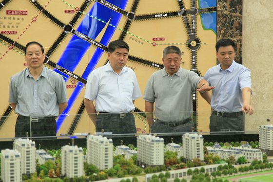 6月5日上午,陜西省農墾集團黨委書記、董事長郭劍、黨委副書記、紀委書記、工會主席張富祥一行到通宇房地產公司調研。集團公司黨委書記、董事長魏紅軍、副總經理姜建友陪同調研。郭劍一行先后來到林景熙園、林景象山墅院,觀看樓盤模擬沙盤、電視宣傳片和項目工地,現場聽取工作人員的介紹。