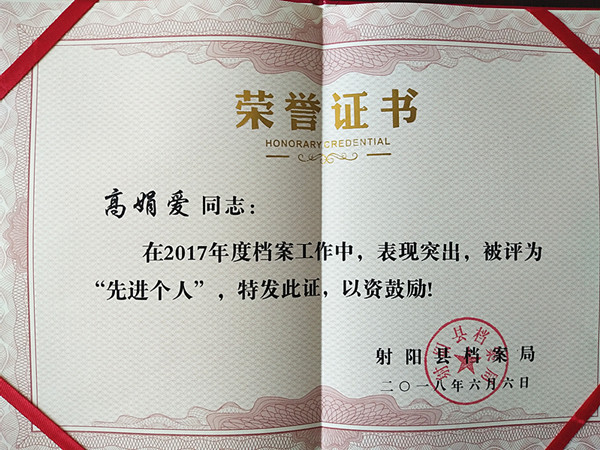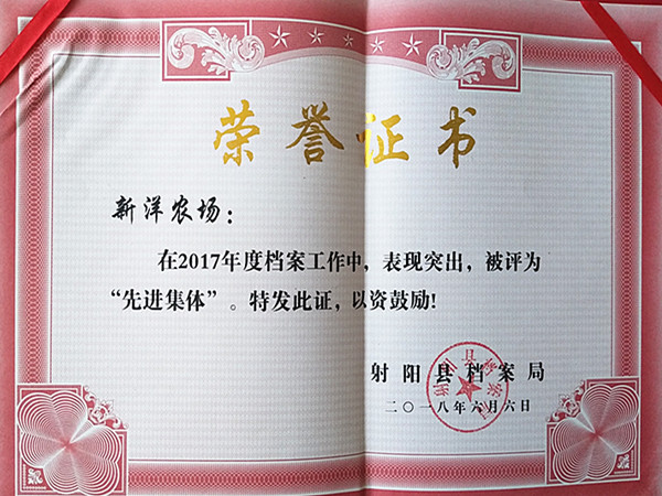 日前,射陽縣檔案局傳來喜訊,新洋農(nóng)場有限公司榮獲射陽縣2017年度檔案管理工作“先進(jìn)集體”稱號,檔案管理員高娟愛榮獲2017年度檔案工作“先進(jìn)個人”。