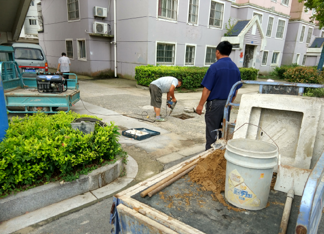 今天早晨640分,筆者看到,就有兩位師傅帶著修理工具和材料來到了窨井的損壞現場,動作麻利地進行程序化的修理修理工作。
