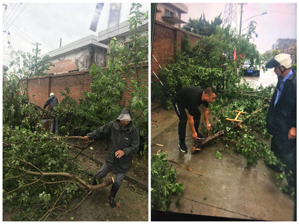 他趕緊向公司匯報了災情情況,并拉設隔離警示帶,提醒路人繞道行駛,在接到在保證安全的前提下,盡全力救活樹木的指示后,他立即從場部開始巡查,并組織上百名工人先對場部倒伏樹木進行了清理。社區居委會、環衛所等部門聯合出動,配合清理打掃、移走折斷樹枝等。直到中午雨停了,工作人員和工人們還在現場清理著,雨衣下的衣服濕了又干了,干了又濕,分不清是雨水還是汗水。