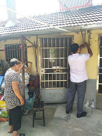 新洋社區為孤寡老人加固擋雨棚提高為老服務水平
