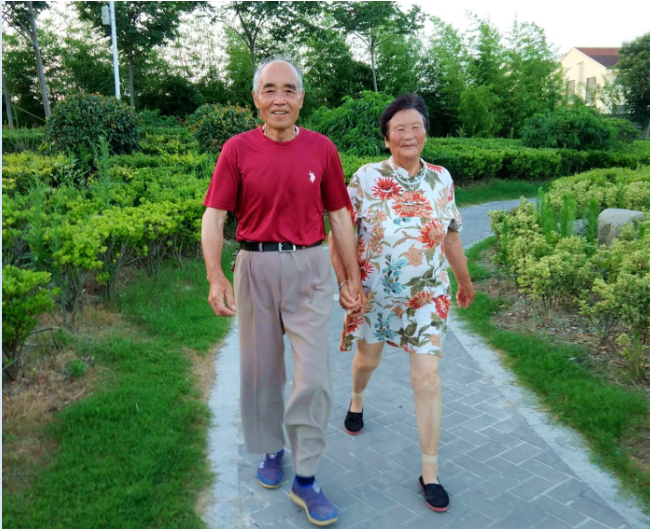 故事的主人公名叫施學(xué)兵,今年77歲。妻子叫吳炳如,小他兩歲,他們住在射陽(yáng)縣淮海農(nóng)場(chǎng)振興小區(qū)一間簡(jiǎn)陋的房子里。每天傍晚他倆都要來(lái)公園里兜圈,并牽手走上六七公里路程,然后再到公園內(nèi)的器材上拉伸鍛煉,舒展下筋骨,這對(duì)恩愛(ài)夫妻成為淮海公園內(nèi)的一道美麗風(fēng)景。