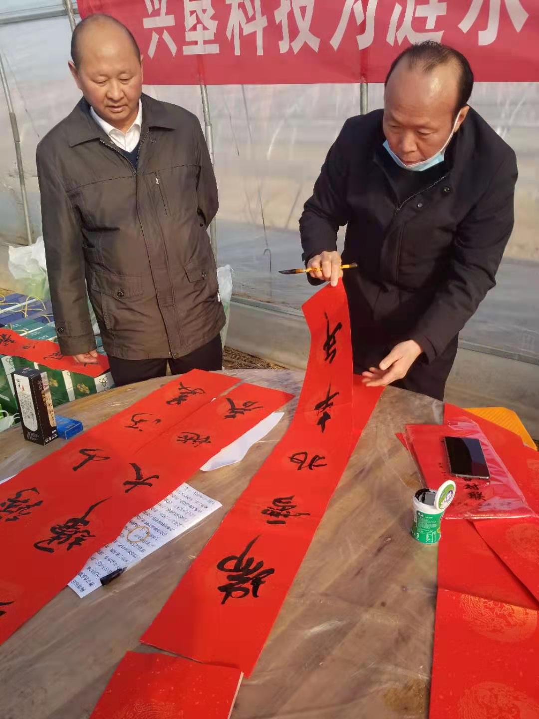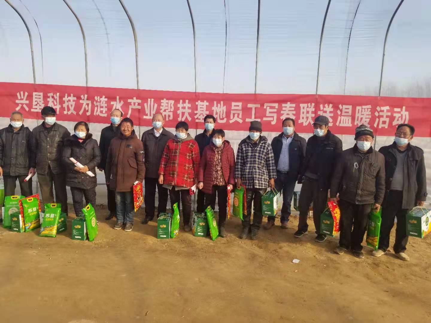 春節將至,幫扶情深。2021年2月4日下午,江蘇農墾興墾農業科技有限公司董事長、總經理陳叢林、副總經理楊育清、馬傳武一行到漣水產業幫扶基地開展寫春聯送溫暖慰問活動,為基地村民送上組織的關懷和新年的祝福。漣水縣林場村支部書記陳法寶一同參加慰問活動。