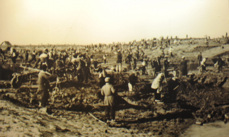 令人感動(dòng)的是,一支近萬(wàn)人的部隊(duì),各級(jí)干部積極帶頭,在全師樹立了勞動(dòng)的榮譽(yù)感,開展了勞動(dòng)競(jìng)賽,就是留存機(jī)關(guān)體弱的女同志,也自動(dòng)到廚房做炊事工作,使當(dāng)年直接參加勞動(dòng)的人就有9000余人。為了建設(shè)進(jìn)度,部隊(duì)官兵中的不少同志,自動(dòng)延長(zhǎng)工作時(shí)間,不睡午覺(jué),不避風(fēng)雨,許多同志在部隊(duì)嚴(yán)令休息的情況下,偷偷摸摸地在月光下來(lái)到工地?fù)屚跍锨?。他們手上老繭起了一層又一層,腳被蘆根戳破了用泥巴糊上再干。