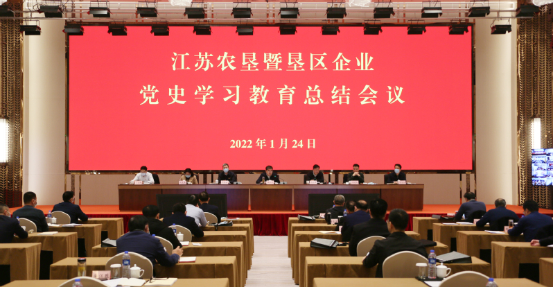 1月24日,江蘇農(nóng)墾暨墾區(qū)企業(yè)黨史學(xué)習(xí)教育總結(jié)會(huì)議在寧召開(kāi)。會(huì)議深入學(xué)習(xí)貫徹習(xí)近平總書(shū)記重要論述重要指示和中央、全省、省國(guó)資委暨省屬企業(yè)黨史學(xué)習(xí)教育總結(jié)會(huì)議精神,全面總結(jié)墾區(qū)黨史學(xué)習(xí)教育取得的成效經(jīng)驗(yàn),對(duì)鞏固拓展黨史學(xué)習(xí)教育成果進(jìn)行部署安排。集團(tuán)公司黨委書(shū)記、董事長(zhǎng)魏紅軍出席會(huì)議并講話,他強(qiáng)調(diào),要堅(jiān)決貫徹落實(shí)習(xí)近平總書(shū)記關(guān)于黨史學(xué)習(xí)教育的重要指示和中央、省委決策部署,深入學(xué)習(xí)貫徹黨的十九屆六中全會(huì)、省第十四次黨代會(huì)精神,不斷鞏固拓展黨史學(xué)習(xí)教育成果,奮力譜寫(xiě)“強(qiáng)富美高”新江蘇現(xiàn)代化建設(shè)的農(nóng)墾篇章,以?shī)^進(jìn)新征程、建功新時(shí)代的優(yōu)異成績(jī)迎接黨的二十大勝利召開(kāi)。集團(tuán)公司黨委副書(shū)記、總經(jīng)理胡兆輝主持會(huì)議,黨委副書(shū)記姚準(zhǔn)明傳達(dá)中央、全省、省國(guó)資委暨省屬企業(yè)黨史學(xué)習(xí)教育總結(jié)會(huì)議精神,黨委委員、副總經(jīng)理姜建友,黨委委員、總會(huì)計(jì)師劉克英,黨委委員、紀(jì)委書(shū)記李旭東,黨委委員、副總經(jīng)理王立新出席會(huì)議。