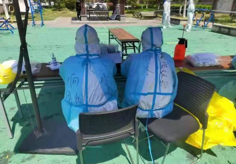 一日為醫,終生不棄。張紅主動擔當國企的責任與使命。4月4日凌晨6點趕到上海浦東新區川沙鎮社區,醫務人員相互之間穿戴好防護服、護目鏡、口罩、鞋套、手套、帽子,并進行嚴而又嚴、實而又實、細而又細的防護檢查,沒有休息片刻就立即投入核酸采集的戰斗中。浦東新區疫情形勢嚴峻,面對被感染的風險和高負荷的工作壓力,張紅有條不紊地進行核酸檢測采集工作。這是上海浦東新區全民核酸檢測第三天,也是核酸采集壓力最大的一天,采集現場的布置、醫護人員與新設備的磨合、工作人員與社區、居委會人員的協調、居民采集核酸的急迫心情等,多重矛盾交織在一起。對此,張紅和其他醫務人員爭分奪秒抓緊進行核酸檢測,炎熱的天氣、高強度的工作加之憋悶的防護裝備,衣衫不停的被汗水浸濕,再被身體烘干,再浸濕……臉部深深的壓痕成了標配,人在汗水“泡”著里工作成了常態……到了晚上,為了緩解上海市疫情防控壓力,張紅又和同事們一起乘上大客車連夜返回到響水,趕到響水時已是4月5日凌晨1點多了。第一趟完成核酸檢測任務連續30個小時不吃不喝,張紅不言苦、不叫累。她堅持以高度的責任心為前來做核酸檢測的人員提供服務,她用真情和愛心譜寫著平凡而動人的天使之歌!