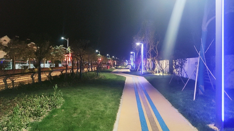 “沒想到農場也建起了健身步道,而且步道兩側還栽種了許多綠化苗木和花草,還配置了許多景觀小品、休息坐椅、親水平臺,生活在農場真是太幸福了。”居住在農場神禾路別墅區的張老漢望著河對岸清新的環境感慨地說道,“沒建這個步道前,其間要么是堆積的雜物、雞鴨棚或是種植的莊稼,破敗的狀況讓人不忍直視?,F在好啦,新砌的圍墻將步道與居住區隔開,道路是彩色道路,兩邊還裝了別致的路燈,不同的樹木自成一體,大家茶余飯后就可以在步道上邊散步邊聊天了。”