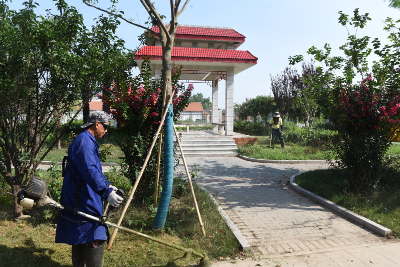 7月13日早上7時(shí),在淮海路北側(cè)的路邊微型公園里,三名環(huán)衛(wèi)職工身負(fù)割草機(jī),伴隨著隆隆的機(jī)器轟鳴聲,他們就已經(jīng)在忙著清理草坪了。據(jù)了解,最近他們的工作重點(diǎn)是修整草坪灌木綠地,維持好綠化帶的整潔美觀形象。“經(jīng)過(guò)我們的勞動(dòng),每當(dāng)看到公共綠地上的草坪被修剪得整整齊齊,就覺(jué)得一天的勞作沒(méi)有白辛苦。”環(huán)衛(wèi)工葉師傅在稍作休息之余時(shí)說(shuō)。在與他們交談中了解到,他們除了修剪草坪外,還有許多諸如種花栽樹(shù)、剪枝除草、澆水抗旱、挖塘施肥、河道保潔、垃圾清運(yùn)等工作,哪里需要哪里上,他們一直以服從指揮而為整個(gè)農(nóng)場(chǎng)的美麗環(huán)境進(jìn)行精心地維護(hù)著。“每一項(xiàng)工作都要有人去打理,雖然環(huán)衛(wèi)工作很辛苦,但我既然選擇了這一行,就得把活干好,畢竟農(nóng)場(chǎng)美麗我光榮嘛!”葉師傅感言道。