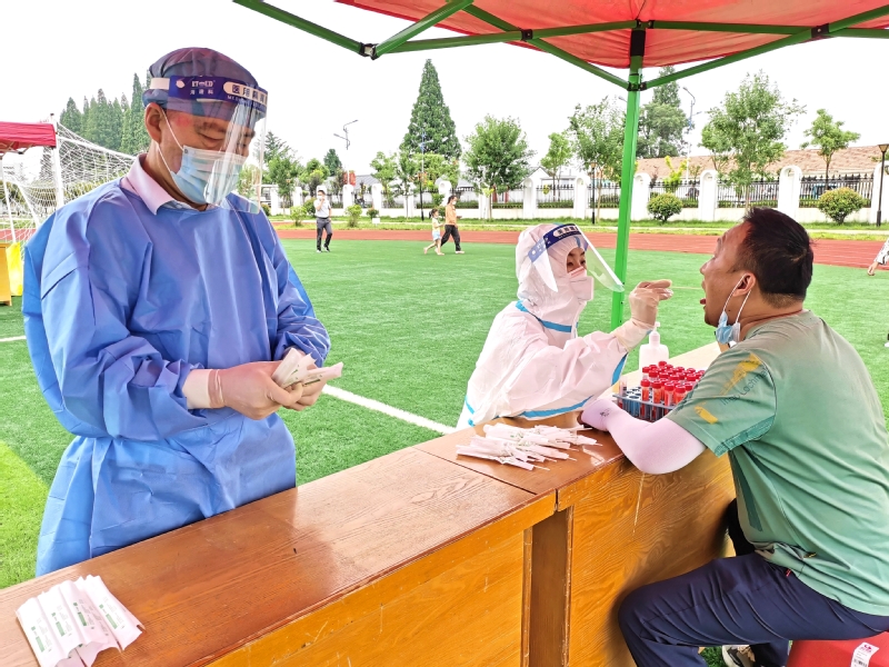 把廣場當戰場,在團結協作中恪盡職守。早晨五點半,居民們陸續趕來參加核酸檢測。只見徐加云一身藍色防護服,頭戴隔離面罩,手著橡膠手套,行色匆匆地忙碌在服務一線。指導掃碼、測量體溫、維持兩米線……看到需要引導的居民,他主動上前做起引導員;遇到腿腳不靈便的老人,他連忙攙扶做起志愿者;碰到哪個點位需要人手,他自愿加入做起服務員。溫度迅速攀升,衣服早已干了又濕,他卻毫不在意。拿起消毒噴壺,他仔細地為采樣臺、醫用垃圾箱、人員等候區等處消毒。為縮短居民等待時間,加快采樣速度,他提前為醫護人員準備好核酸檢測咽拭子棉簽。“我是迎湖居委會工作人員,這些都是我應該做的,更何況我還是一名共產黨員,全心全意為人民服務是我的職責。”當被問到辛不辛苦時,他笑著回答道。歷時三小時十分鐘,迎湖廣場檢測點完成樣本采集1080份。核酸檢測高效率的背后,是徐加云的點滴付出,也是一個個共產黨員團結協作的結果。