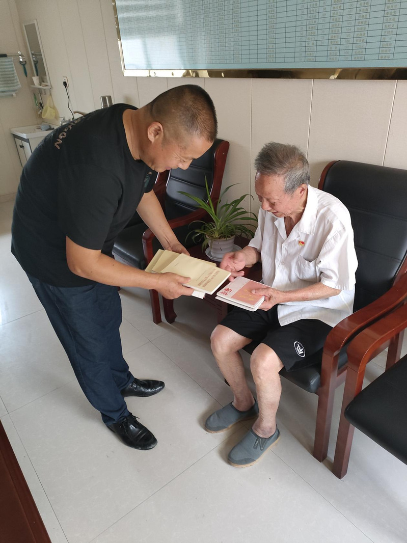 賴順祥其實就是一名普普通通的退休老黨員,他們退休在家,也干不出什么驚天動地的大事業(yè),但他們以最樸實無華的方式發(fā)揮著余熱,始終展現(xiàn)出一名共產(chǎn)黨人優(yōu)良的品質(zhì)。“退休不褪色,夕陽更生輝!”也是對賴順祥和所有退休黨員的真實寫照。圖為賴順祥接過黨員學習資料的瞬間。