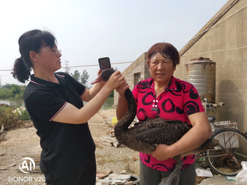 第二天,潘振海就將發現黑天鵝的情況告訴了分場干事,請他上報農場相關部門。分場干事接到信息后,立即與淮海農場社區綜合管理科負責林業和畜禽養殖的王增平聯系。于是王增平立即找到農場獸醫站的畜禽專家朱正華一同前往。