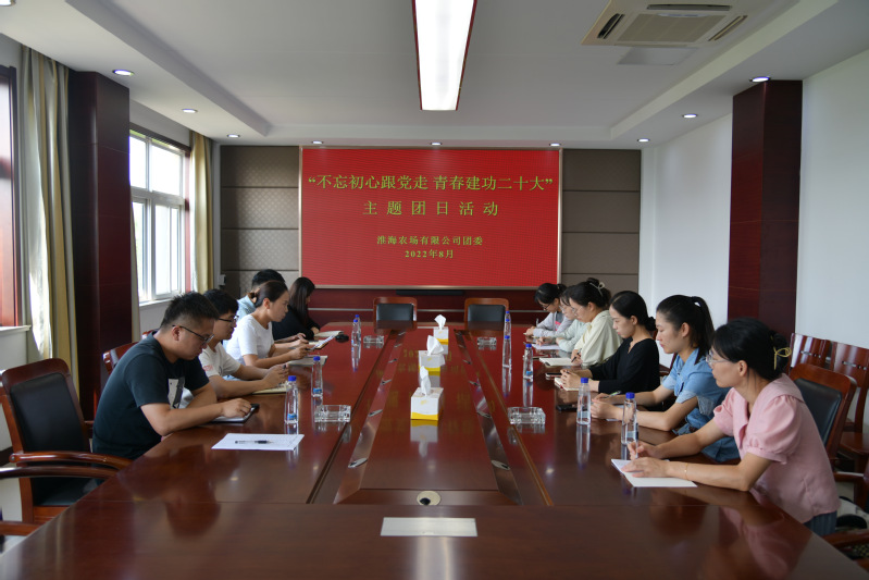 淮海農場公司團委將 通過主題團日活動主題團課形式新穎的線上線下活動多措并舉推進不忘初心跟黨走青春建功二十大主題教育活動走深走實,團結引領廣大淮海團員青年堅定跟黨走、建功新時代,以實際行動迎接黨的二十大勝利召開