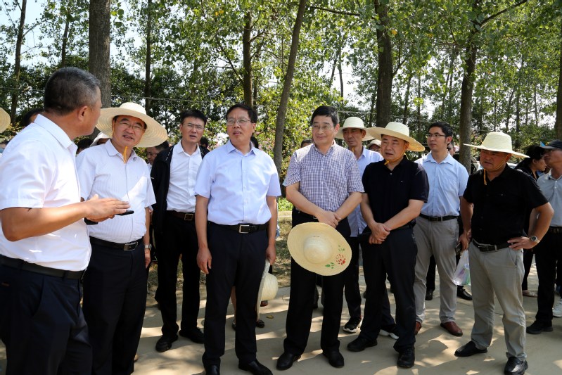 817日下午,省農業農村廳總農藝師唐明珍以及省相關市縣農業部門一行100余人組成的玉米大豆帶狀復合種植調研組到新曹觀摩,集團公司黨委委員、副總經理王立新陪同。