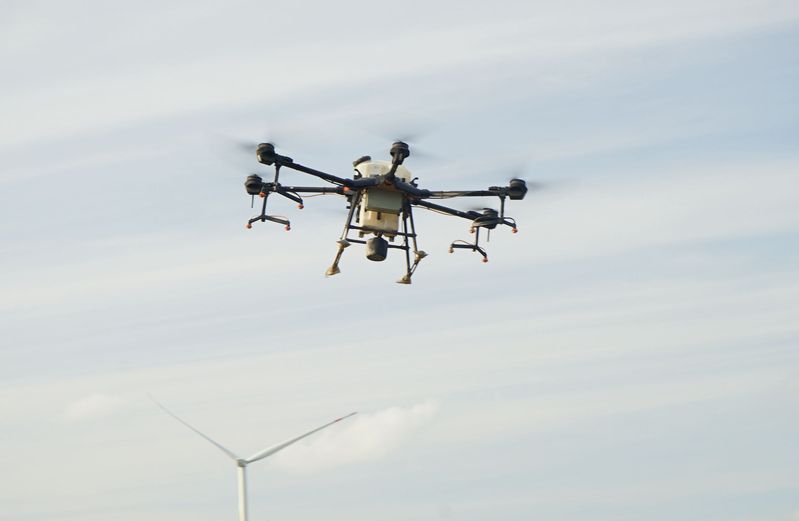 在2大隊(duì)河北的水稻田上空,一架無人機(jī)在噴灑農(nóng)藥,只見噴灑農(nóng)藥噴噴停停,一點(diǎn)都不連貫,我好生納悶,是不是無人機(jī)出故障了。向操縱無人機(jī)的師傅一詢問,我恍然大悟,我這是少見多怪啊,不是無人機(jī)出故障,而是植保無人機(jī)輸入了事先由測(cè)繪巡田無人機(jī)采用多光譜技術(shù)拍攝下的雜草分布圖,植保無人機(jī)根據(jù)雜草分布圖精準(zhǔn)點(diǎn)灑農(nóng)藥,所以就出現(xiàn)了噴灑農(nóng)藥噴噴停停的情況。師傅還告訴我,因?yàn)榫珳?zhǔn)施藥,這塊20多畝的稻田,只用了8畝的藥量,節(jié)約農(nóng)藥五分之三,大大降低了施藥成本。