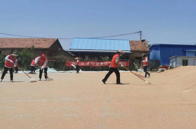 面對6月11日即將來臨的降雨天氣,東辛緊急吹響雨前顆粒歸倉“集結(jié)號”。各黨支部充分發(fā)揮戰(zhàn)斗堡壘作用,與掛鉤生產(chǎn)區(qū)聯(lián)合開展“黨旗飄揚 守望麥收”主題黨日活動,把黨支部搬到田間地頭,讓黨旗在田間飄揚。黨員佩戴黨徽,亮出身份做表率,走入晾曬場,用實際行動解決搶時收割、烘干晾曬等實際困難,“三夏”火熱實踐成為了開展主題教育的生動“課堂”和實踐“基地”。