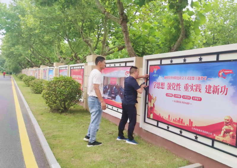 在線下,在淮海大地報、櫥窗開設主題教育專欄,精心制作34塊主題教育文化墻,將農場公司主題教育開展以來有關的活動和主題教育宣傳標語,以圖文并茂的形式進行展示;在農場公司沿路和居民人流量大的公眾場所,以及分場社區布展了40多條紅色橫幅,顯著展示“以學鑄魂、以學增智、以學正風、以學促干”等主題教育宣傳相關標語。訂購《習近平著作選讀》等學習書籍近20種,發放至黨委理論學習中心組成員及各基層黨組織學習充電;組織主題教育相關知識競賽2次,近百人參與了應知應會理論知識測試活動。主題教育活動的大力推進,增強了黨員干部和職工群眾對主題教育的知曉度和關注度。