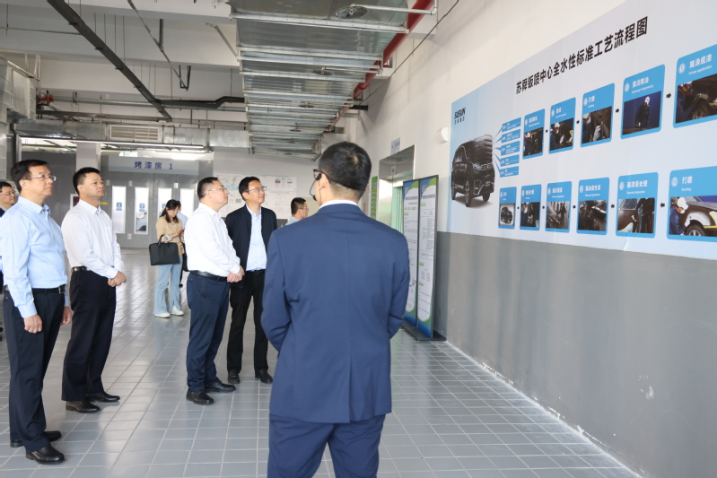 在蘇舜公司鈑噴中心“綠島”項(xiàng)目現(xiàn)場(chǎng),督察組詳細(xì)了解了全水性標(biāo)準(zhǔn)工藝噴涂流程、傳統(tǒng)溶劑性油性漆與水性漆環(huán)保的參數(shù)對(duì)比。在中涂預(yù)噴綜合房、水性漆環(huán)保型烤漆房、全水性油漆調(diào)漆間、VOCs凈化治理裝置及全封閉漆后處理工位等點(diǎn)位,督察組聽取了設(shè)備運(yùn)行情況介紹,詢問(wèn)了廢棄材料回收處置情況。督察組還聽取了蘇舜公司生態(tài)環(huán)保工作和鈑噴中心“綠島”項(xiàng)目建設(shè)情況的匯報(bào),詢問(wèn)了園區(qū)雨水回收綜合利用系統(tǒng)使用情況。