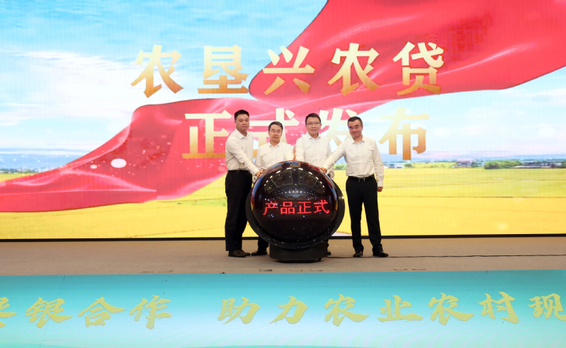 會上,吳本輝、胡建斌、姜建友、湯宇共同發(fā)布了“農(nóng)墾興農(nóng)貸”產(chǎn)品,姜建友、湯宇代表雙方簽署了戰(zhàn)略合作協(xié)議。