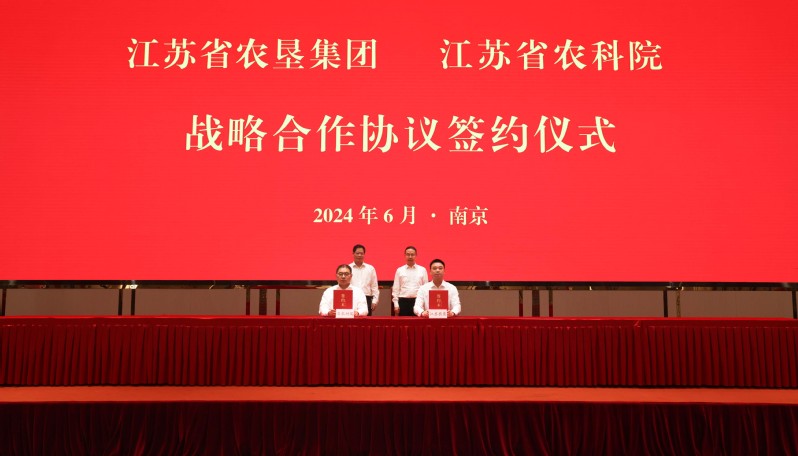 吳本輝表示,省農(nóng)科院是直屬江蘇省人民政府的綜合性公益一類農(nóng)業(yè)科研機(jī)構(gòu),是我國近代農(nóng)業(yè)科技組織化、建制化發(fā)展的開創(chuàng)者和奠基者之一,創(chuàng)新形成了“以院帶所”的全省一盤棋科研組織體系,在全省現(xiàn)代農(nóng)業(yè)科技創(chuàng)新、科技服務(wù)、人才引培、對外合作、院所治理等方面發(fā)揮重要作用,是支撐全省現(xiàn)代農(nóng)業(yè)發(fā)展的主力軍和先鋒隊(duì)。雙方將積極圍繞我省優(yōu)化農(nóng)業(yè)產(chǎn)業(yè)結(jié)構(gòu)、推動加工業(yè)轉(zhuǎn)型升級、延伸加粗農(nóng)業(yè)產(chǎn)業(yè)鏈目標(biāo),聚焦“產(chǎn)學(xué)研用”新模式創(chuàng)建,充分發(fā)揮省農(nóng)墾集團(tuán)全產(chǎn)業(yè)鏈一體化發(fā)展優(yōu)勢和省農(nóng)科院現(xiàn)代農(nóng)業(yè)技術(shù)和資源優(yōu)勢,努力發(fā)展現(xiàn)代農(nóng)業(yè)新質(zhì)生產(chǎn)力,積極在生物育種、綠色生產(chǎn)、農(nóng)產(chǎn)品加工、質(zhì)量安全等主要方向,通過選育一批重大品種,攻克一批關(guān)鍵技術(shù),研發(fā)一批拳頭產(chǎn)品,開發(fā)一批智能裝備,實(shí)現(xiàn)一批產(chǎn)業(yè)應(yīng)用,促進(jìn)我省現(xiàn)代農(nóng)業(yè)產(chǎn)業(yè)多元化、高值化、智能化發(fā)展,為江蘇農(nóng)業(yè)現(xiàn)代化和農(nóng)業(yè)產(chǎn)業(yè)振興保駕護(hù)航。