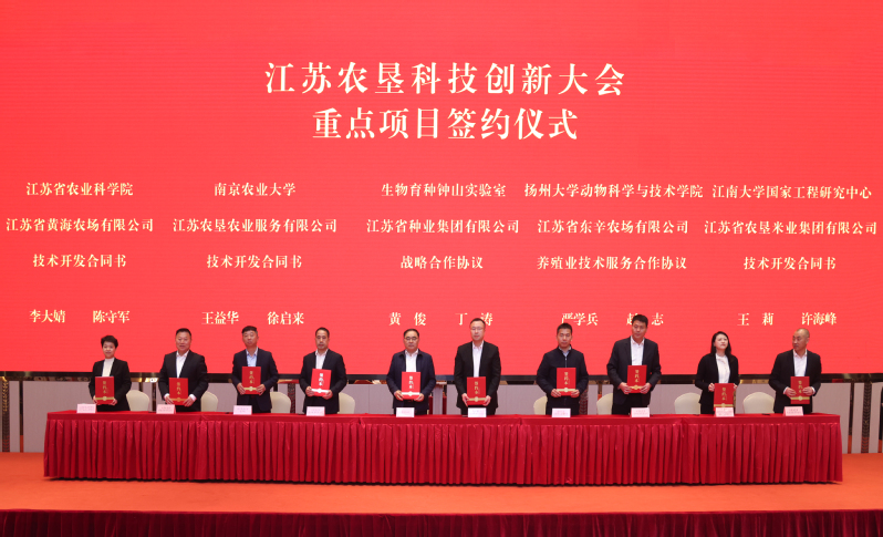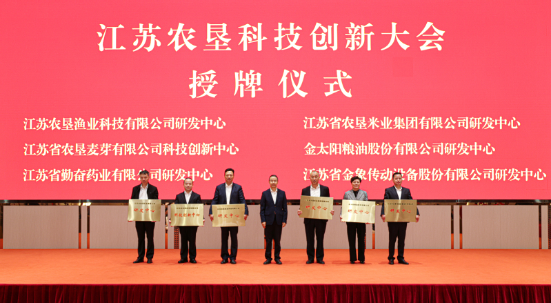 會上,吳本輝、姜建友共同為江蘇農(nóng)墾漁業(yè)科技有限公司和江蘇省農(nóng)墾產(chǎn)業(yè)技術(shù)研究院有限責(zé)任公司揭牌,吳本輝為蘇墾漁業(yè)研發(fā)中心、蘇墾米業(yè)研發(fā)中心、蘇墾麥芽科技創(chuàng)新中心、金太陽糧油研發(fā)中心、勤奮藥業(yè)研發(fā)中心、金象傳動研發(fā)中心授牌,姜建友發(fā)布江蘇農(nóng)墾2024-2025年揭榜掛帥項(xiàng)目榜單,生物育種鐘山實(shí)驗(yàn)室、省農(nóng)科院、南京農(nóng)業(yè)大學(xué)、江南大學(xué)、揚(yáng)州大學(xué)分別與集團(tuán)公司所屬企業(yè)簽署重點(diǎn)項(xiàng)目合作協(xié)議。