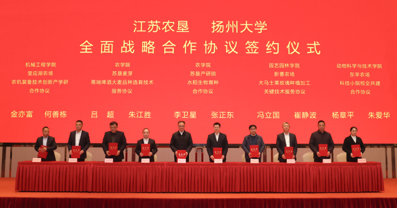 集團(tuán)公司總經(jīng)濟(jì)師、相關(guān)部門負(fù)責(zé)人,相關(guān)農(nóng)場、蘇墾農(nóng)發(fā)等單位負(fù)責(zé)人,揚(yáng)州大學(xué)相關(guān)學(xué)院及部門負(fù)責(zé)人、專家教授等參加簽約儀式。