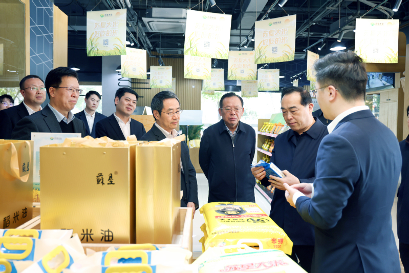 王榮平一行來到蘇墾尚膳門店,了解江蘇農墾糧油產品和精深加工食品,調研科技創新、智慧農業、農產品全程質量追溯等工作情況;在江蘇農墾展示廳,詳細了解農墾創業及改革發展歷程。