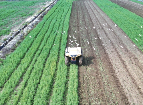 小滿時節(jié),位于江蘇省淮安市金湖縣的江蘇農(nóng)墾寶應(yīng)湖農(nóng)場歐盟國標(biāo)雙認(rèn)證的有機(jī)稻種植基地,一臺無人智能拖拉機(jī)正在進(jìn)行旋耕作業(yè)。這臺無人智能拖拉機(jī)由丘沃智能科技自主研發(fā),實(shí)現(xiàn)效率與油耗的聯(lián)合優(yōu)化控制。通過AI作業(yè)規(guī)劃算法,農(nóng)機(jī)和農(nóng)具可自主協(xié)同形成覆蓋作業(yè)方案,實(shí)現(xiàn)24小時無人化精準(zhǔn)作業(yè),單日耕作面積達(dá)700畝,較傳統(tǒng)模式效率提升3倍。 梁德兵 攝(來源:大國三農(nóng))