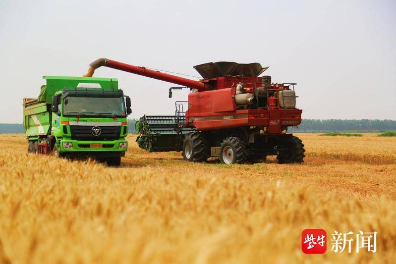 “這片小麥是去年10月初播種的,品種為華麥17。” 崗埠農場高橋生產區高南隊管理員姜茂合介紹道。說話間,穗粒飽滿的小麥被卷入收割機倉,切割、脫粒等工序一氣呵成,一顆顆金黃飽滿的麥粒從卸糧口傾瀉而下,迅速將運糧車車廂裝滿。崗埠農場6.4萬余畝小麥成熟度良好,農場緊扣“早”“搶”二字,提前調配收割機、拖拉機等各類機械300余臺套,科學規劃機型與收割時間,全力推進搶收工作。此外,農場自有烘干線日烘干能力達1880噸,倉容27000噸,并通過外租烘干倉儲設施,多管齊下確保糧食烘儲安全。