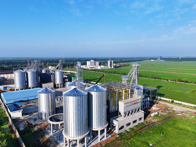 7月17日,在位于連云港市海州區的江蘇農墾崗埠農場,施工單位搶抓晴好天氣,加緊推進1200噸糧食智能烘干倉建設。該烘干倉采用5G+烘干機物聯網技術,可通過手機、電腦等登錄物聯網App實現操作烘干線、糧庫設備。徐衛 李想 攝 (視覺江蘇網供圖)