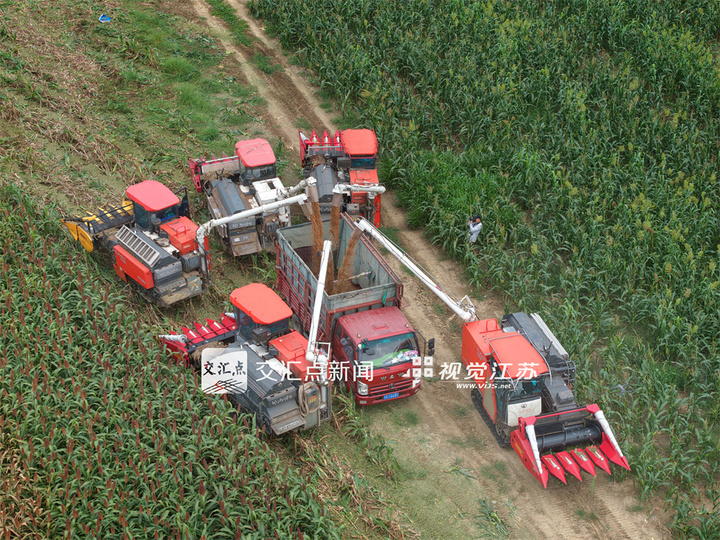 9月21日,江蘇農墾江心沙農場位于金壇長蕩湖和錢資湖畔外拓基地的8000余畝紅高粱全面開鐮收割。許叢軍 袁偉 攝 視覺江蘇網供圖