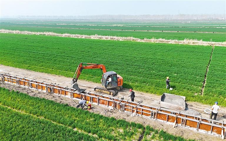 四月二日,施工人員在江蘇省連云港市崗埠農場開展水利設施建設,為糧食穩產增產打好基礎。徐 衛攝(中經視覺)