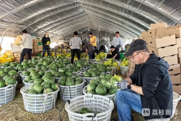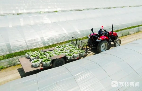一輛輛滿載西瓜的貨車駛出農場,預計24小時內,這批承載著春日甜蜜的“弶農”牌西瓜即可擺上長三角地區市民的餐桌。