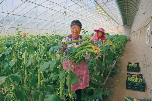 在江蘇農(nóng)墾崗埠農(nóng)場,菜農(nóng)們在大棚里精心挑選成熟的絲瓜,進(jìn)行分揀、裝筐,準(zhǔn)備發(fā)往農(nóng)貿(mào)市場銷售。