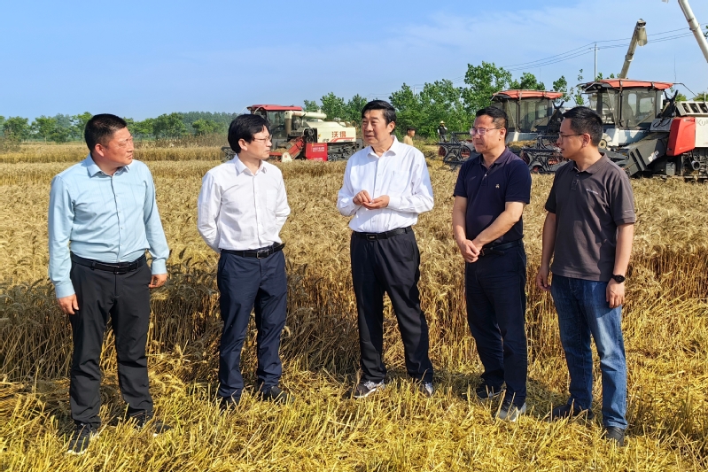 6月12日下午,集團公司黨委書記、董事長魏紅軍到東辛調研。他強調,要深入扎實開展學習貫徹習近平新時代中國特色社會主義思想主題教育,把“學思想、強黨性、重實踐、建新功”總要求貫穿始終,堅持問題導向,深化調查研究,持續提高發現問題、研究問題、解決問題的能力,以實實在在的工作業績檢驗主題教育成果。魏紅軍針對東辛漁光互補項目前期規劃中可能存在的問題,前往灌云洋橋漁光一體光伏發電項目現場考察,詳細了解相關經驗做法。隨后在東辛小麥制種大縣項目現場聽取“三夏”工作情況介紹,并對東辛“三夏”工作取得階段性勝利表示肯定。魏紅軍強調,要堅決抓好糧食安全這件頭等大事,決不能有任何松勁歇腳的思想,牢牢把握主動權,確保“三夏”取得全勝。要大力實施集團公司強核戰略和種業振興行動,將小麥制種大縣項目打造成東辛的一張名片。邁上新征程,東辛要聚焦影響高質量發展突出問題,進一步樹立“謀大事、干大事、成大事”的鮮明導向,抓好產業發展,強化內部管理,提升經營效益,不斷增強核心競爭力,在事關全局、事關發展、事關長遠的研究謀劃、難題破解上取得新進展新成效,奮力在墾區高質量發展和現代化建設中繼續當好排頭兵,為打造現代農業航母“江蘇