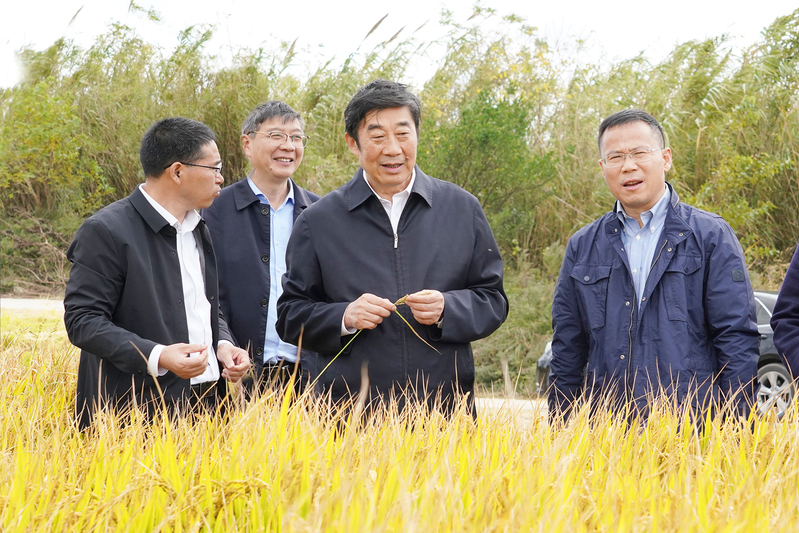 10月30日下午,集團公司黨委副書記、總經理胡兆輝一行到云臺農場公司考察調研,集團公司農業發展部負責人、蘇墾農發股份公司總裁,云臺領導班子成員陪同。胡兆輝一行先后在大汪水稻收割現場、小島曬場烘干線、張圩玉米大豆茬口小麥出苗田塊、省園博園項目、高效農業生產區靈芝種植大棚等地進行實地走訪調研。胡兆輝對云臺“三秋”的工作進展情況表示充分肯定。胡兆輝指出,全場上下要深入學習宣傳貫徹黨的二十大精神,進一步提振精神、鼓足干勁,踔厲奮發、勇毅前行,為全面推進鄉村振興提供堅實支撐。胡兆輝強調,要搶抓晴好天氣,做細做實“三秋”生產準備工作,確保顆粒歸倉,抓牢豐收成果,要把實施好綠色高質高效行動作為“三秋”工作的重要抓手,不誤農時抓好秋種各項工作,全力奪取全年糧食豐產豐收,為明年夏熟夯實生產基礎。省第十二屆園博會是江蘇園林綠化行業層次最高、規模最大、影響最廣的大會。當前,省園博會籌建工作已進入沖刺階段。胡兆輝要求,要進一步增強緊迫感、責任感,加強統籌協調,周密做好籌備工作,科學組織施工,加快推進園區江蘇農墾現代農業科技園項目建設,做好油菜花播種工作,提升景觀質量,充分展示江蘇農墾現代農業水平與良好國企形象