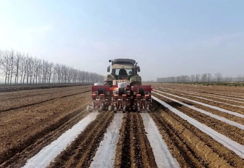 春風拂過黃海之濱,中山河與灌河環抱的土地上,一場現代農業的“春耕圖”正徐徐展開。連日來,在黃海農場鮮食玉米種植基地,連片的銀白地膜順著田壟蜿蜒鋪開,與湛藍天空相映成畫;覆膜滴灌系統已正式開啟,細密的水流順著滴灌帶精準滲入土壤,為剛播下的種子送去“第一口滋養”?!耙郧胺N地靠天,現在種地靠科技。”在田間,響墾臻品農業科技公司種植部負責人陳騁展示了智能控制系統。依托今年全面推廣的覆膜滴灌水肥一體化技術,土壤的墑情、溫度實時可查,原本需要數十人完成的灌溉施肥作業,如今只需一鍵操作。地膜覆蓋不僅有效抑制了雜草生長,更將地溫提升了3至5℃,讓玉米能夠搶在早春時節扎根?!斑@套滴灌系統打破了傳統漫灌模式,將水肥直接輸送至作物根系,節水40%以上,大幅減少肥料流失,養分供給更精準高效?!标愹G的話語里滿是欣喜,“預計比傳統種植模式提前10至15天上市,搶占市場先機,同時,出苗均勻,提高成品率15%以上。此次春播預計4月下旬結束,6月底迎來采收季?!边@僅是黃海農場打造鮮食玉米全產業鏈的“最初一公里”。作為江蘇農墾特色產業全產業鏈項目,黃海農場今年進一步擴大種植規模,在已有1500畝標準化基地的基礎上,深化與