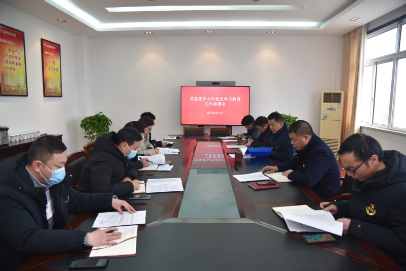 3月11日下午,蘇墾麥芽公司召開黨史學習教育工作部署會,公司領導郭世平、錢海祥、張明、李海峰、鄒德來出席會議,各黨支部書記、團支部書記以及黨建部門工作人員參加會議。
