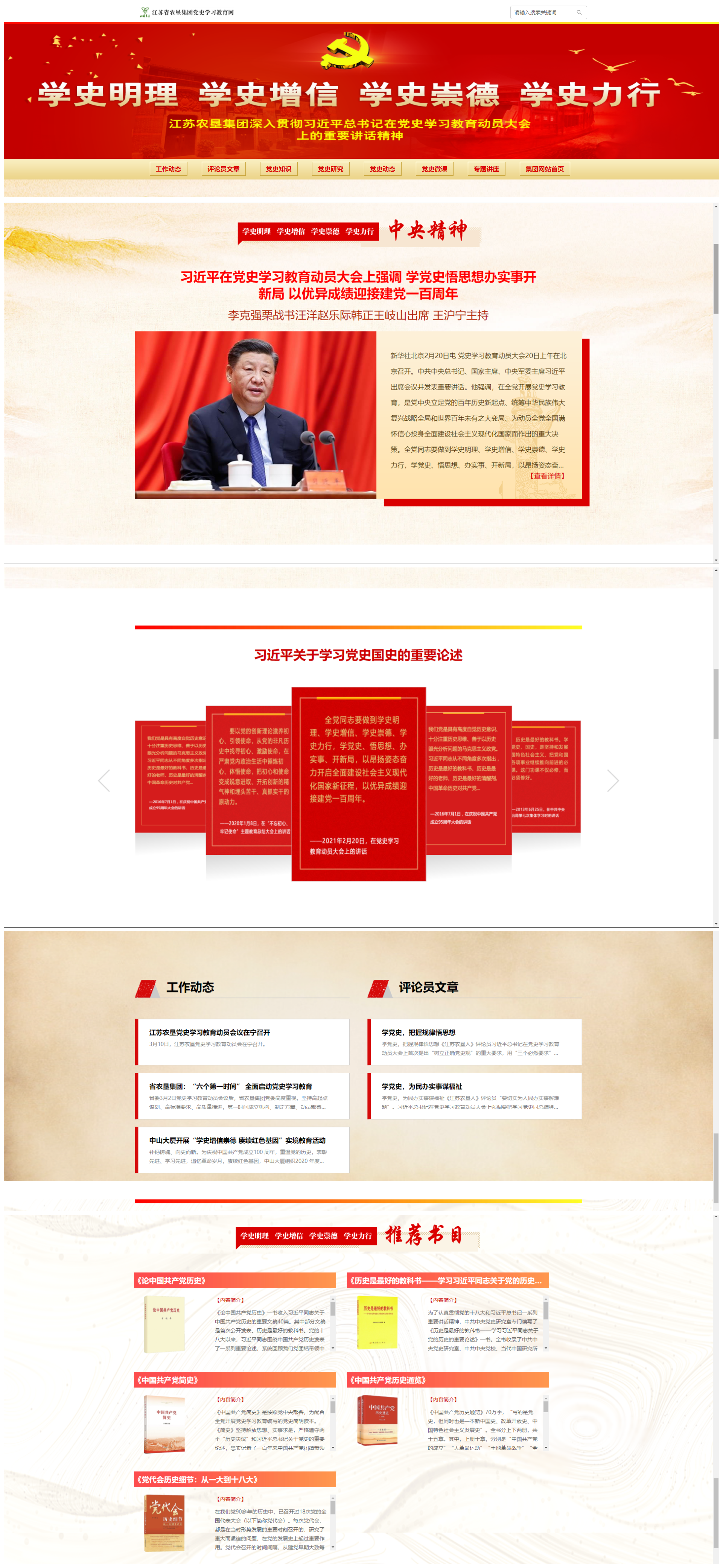 黨史學習教育活動開展以來,江蘇農墾在充分運用好電視、報刊、微信公眾號、調頻廣播、電子顯示屏、文化長廊等宣傳載體的基礎上,注重創新開發網站載體功能,為充分發揮其方便快捷、信息量大、互動性強等特點,開發設立了黨史學習教育網站,網站下設工作動態、評論員文章、黨史知識、黨史研究、黨史動態、黨史微課、專題講座等7個欄目,搭建起黨員學習、互動交流的平臺。