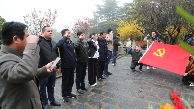 在八路軍著名抗日將領符竹庭墓前,大家在志愿者的介紹中了解符竹庭將軍戎馬一生、為國為民的光輝事跡。隨后,一行人莊嚴肅穆,全體默哀1分鐘,以表達對革命先烈最崇高的敬意和最深刻的懷念。支部黨員為革命英烈敬獻花籃,全體黨員向紀念碑三鞠躬,并面向黨旗重溫入黨誓詞。