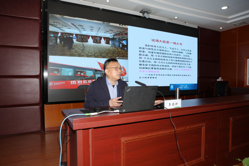 讀書班邀請了鹽城市委黨校副校長李德新同志以《風雨蒼黃百年路 高歌奮進新征程》為題作專題授課。他從為什么要開展黨史學習教育、如何科學準確把握百年黨史、怎樣揭示弘揚歷史經驗規律三個方面,深刻闡釋了從黨史學習教育中汲取智慧力量以及開展黨史學習教育的深遠意義。