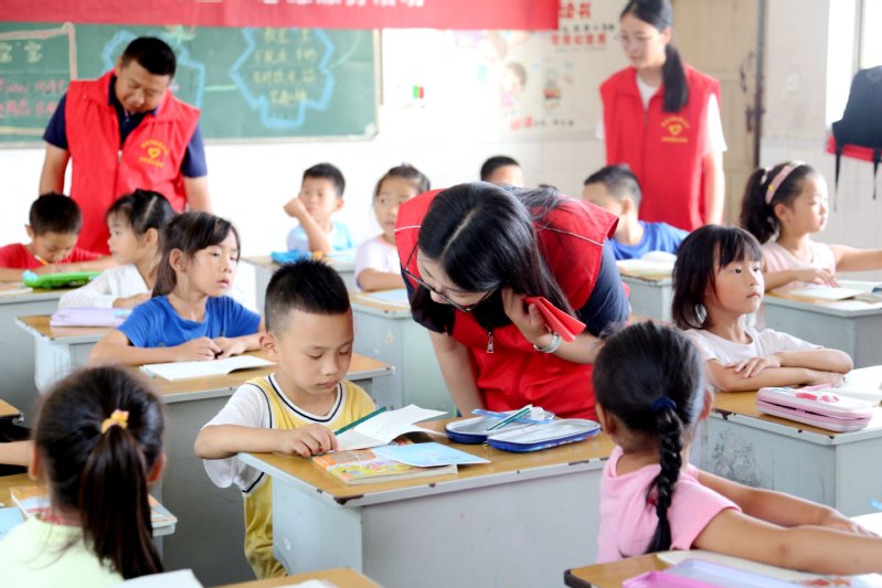 小課堂上,氣氛火熱。志愿者們分工合作,積極與孩子們進行互動交流,帶領(lǐng)他們開展各種活動,大家都沉寂在歡聲笑語中。孩子們都十分喜歡志愿者們,他們說:“這些大哥哥和大姐姐都很棒,給我們講解不會的題,讓我們有了更深的認識和理解。”志愿者們也在志愿服務(wù)過程中感受到了快樂和滿足。