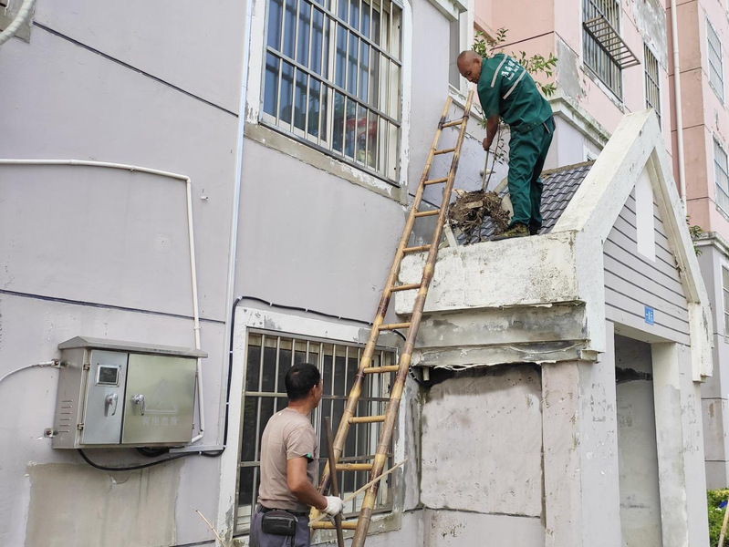 在黨史學習教育過程中,農場社區城南居委會的黨員干部和網格員在走訪調研過程中,發現沿路的一些樓房單元門頂棚上積攢了許多垃圾,單純從地面上看,有的看不到,但也有的看到長出的一些雜草或小樹簇立在那兒;而如果從居家的窗口特意望去,就可看到垃圾存在,而且十分不雅觀。為進一步營造凈化、美化的轄區環境,近日,淮海社區城南居委會聯合環衛所相關人員一起,針對淮海路沿線樓房的單元門頂棚存在的垃圾、雜物現象開展了專項清理整治行動。