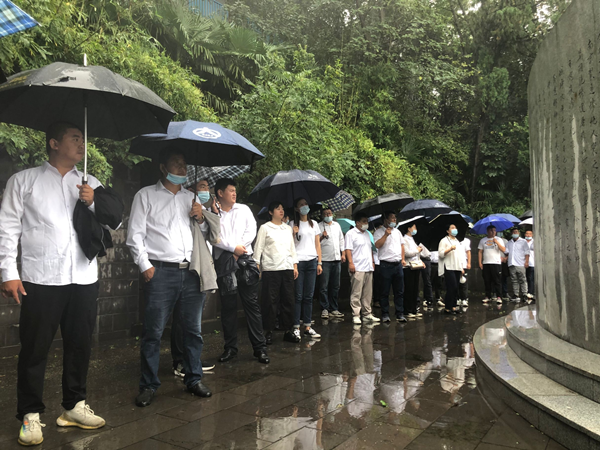 大家懷著崇敬的心情冒著小雨從山腳拾級(jí)而上,來(lái)到侵華日軍“侵華日軍盱城大屠殺遇難同胞紀(jì)念碑”前瞻仰,面對(duì)紀(jì)念碑集體默哀、深深鞠躬,以表達(dá)對(duì)遇難同胞們的沉痛哀思。